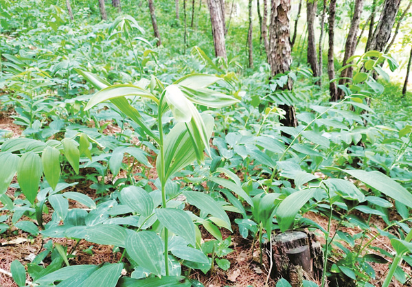 四月,是黄精生长、开花旺盛的季节,乳白色的花如一串串铃铛在春风的吹荡下,散发着浅浅清香。在金寨县黄精种植基地,郁郁葱葱的黄精苗长势喜人,迎着春风摇曳,寂静的山坡上到处是一派生机勃勃的春景,洋溢着乡村振兴的希望。